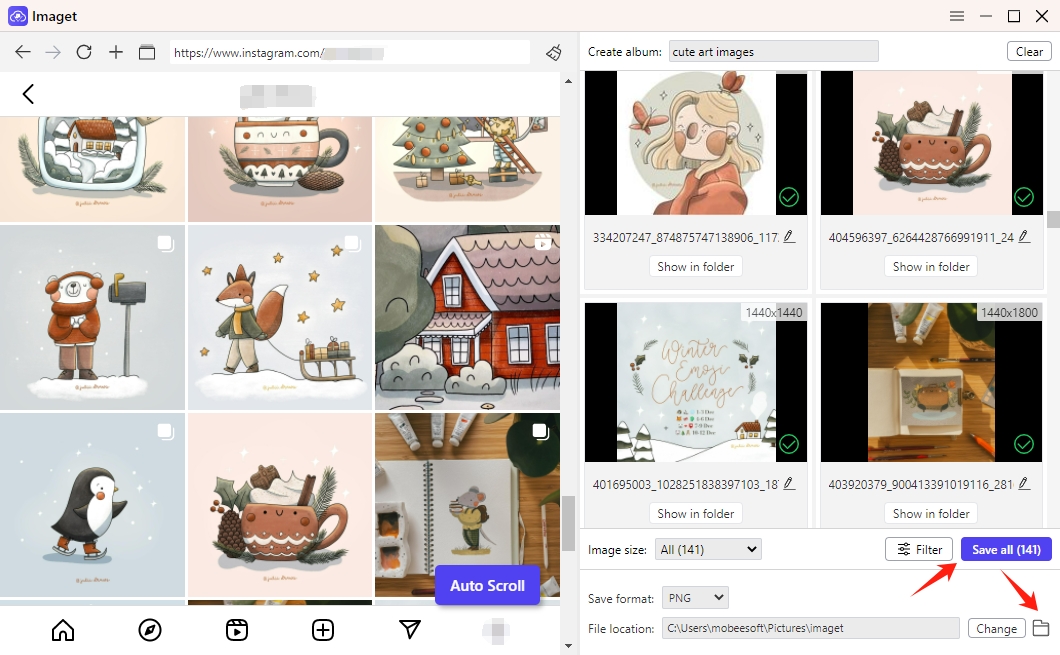 '모두 저장' 버튼을 클릭하고, Imaget 방금 생성한 앨범 이름의 폴더에 있는 모든 이미지의 다운로드가 시작됩니다.